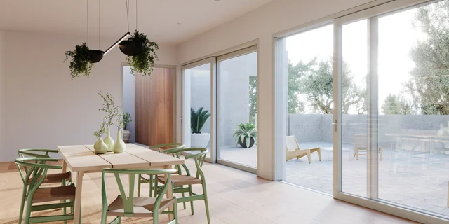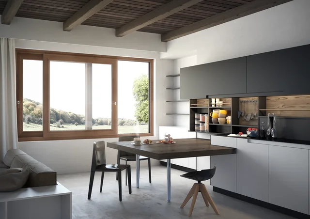 Il profilo LUCEVIVA di FINESTRENURITH è studiato per garantire massima luminosità e ambienti più ariosi grazie a profili sottili e raffinati. Il nodo centrale ridotto a soli 100mm, molto più contenuto rispetto alle normali finestre in PVC, permette una continuità visiva straordinaria, esaltando la vista esterna e donando sensazione di apertura e leggerezza.