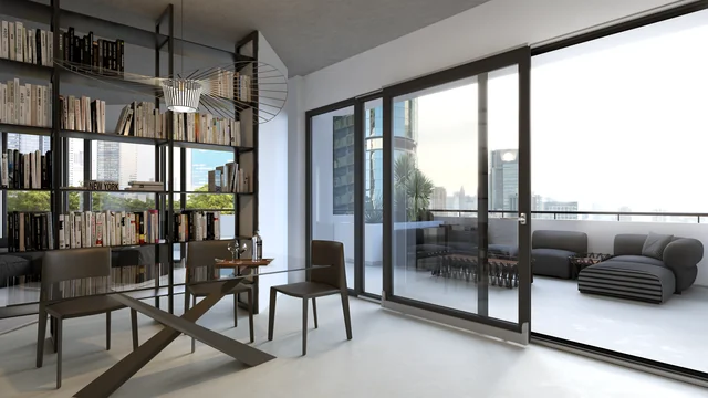 Lo Scorrevole-Alzante ALZANTE EVO 2018 di FINESTRENURITH è progettato per creare ambienti ariosi grazie a ante ampie e profili performanti. Il meccanismo di sollevamento facilita movimenti scorrevoli fluidi, garantendo manovrabilità semplice e silenziosa anche su grandi dimensioni.