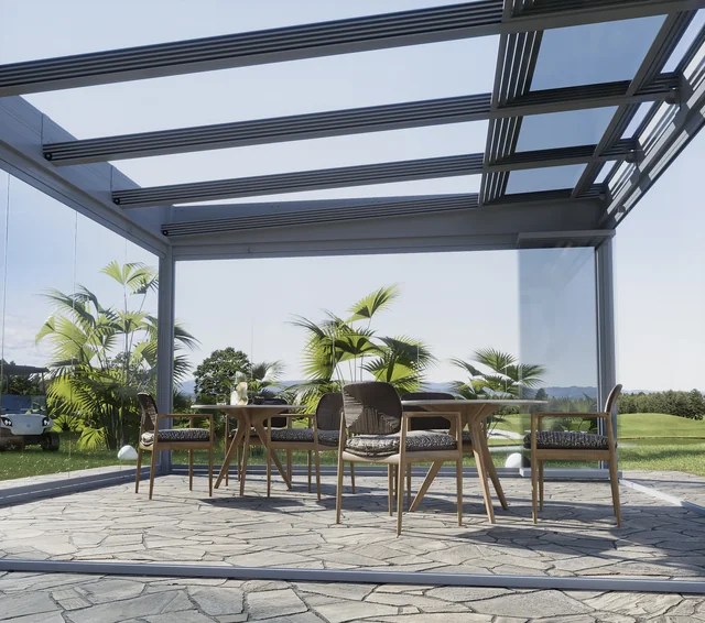 Grazie alla sua tecnologia evoluta, offre protezione totale da sole, pioggia e vento, garantendo comfort e isolamento termico per 365 giorni l’anno.