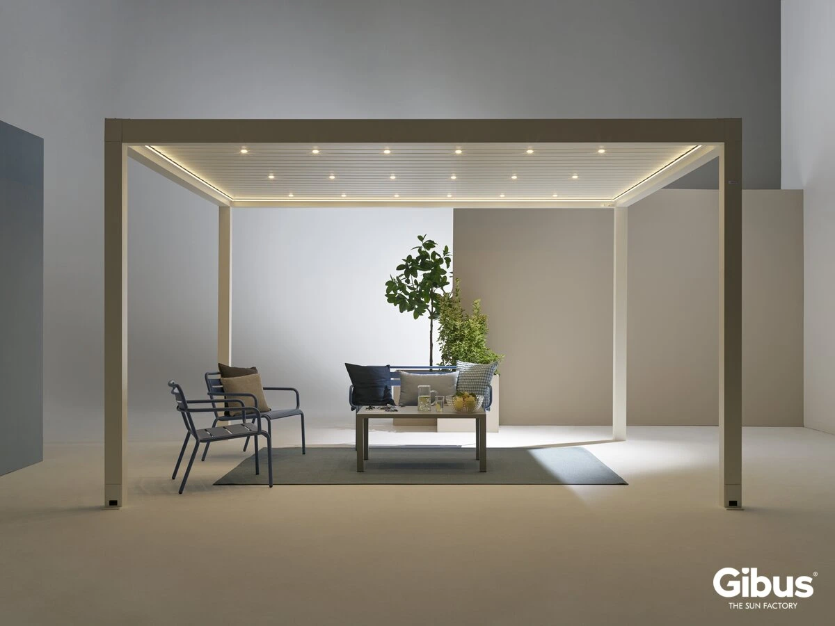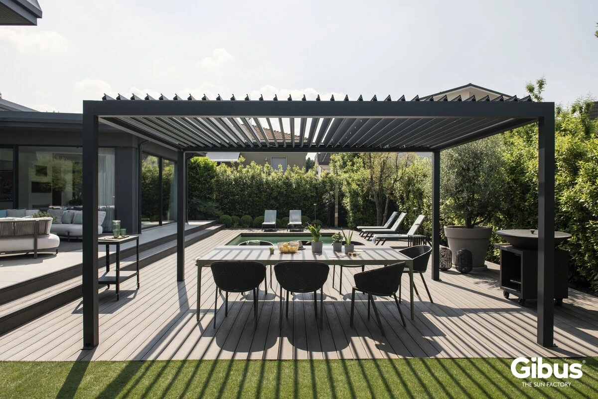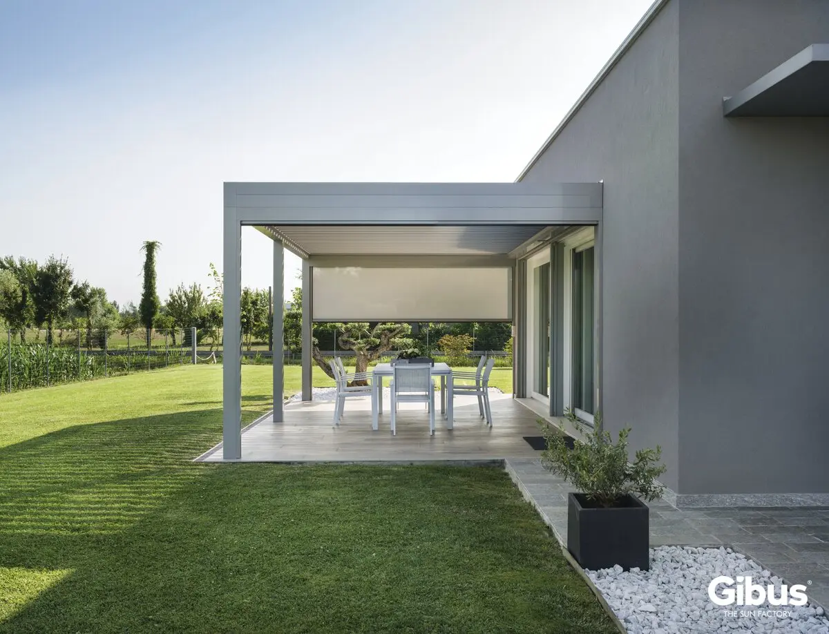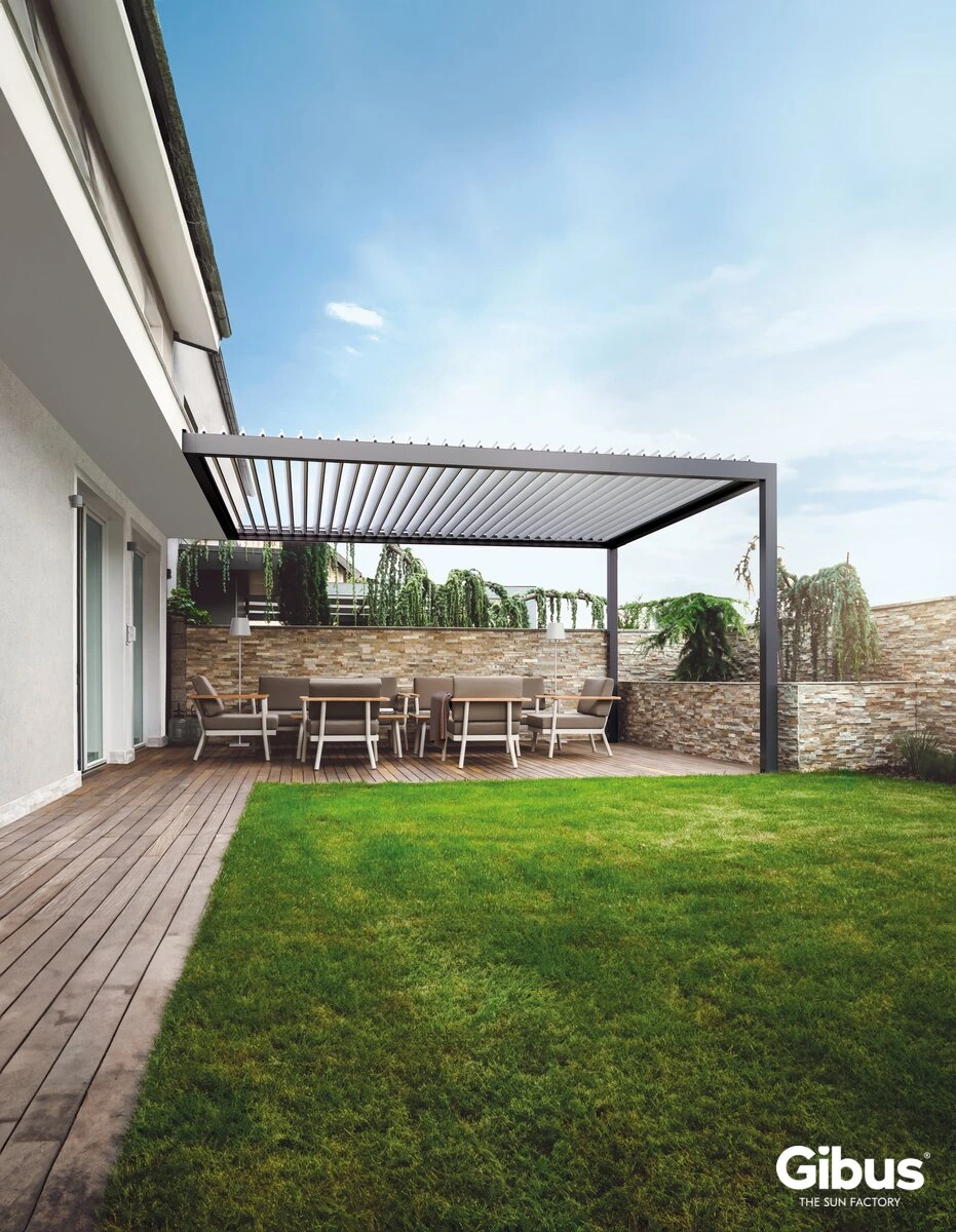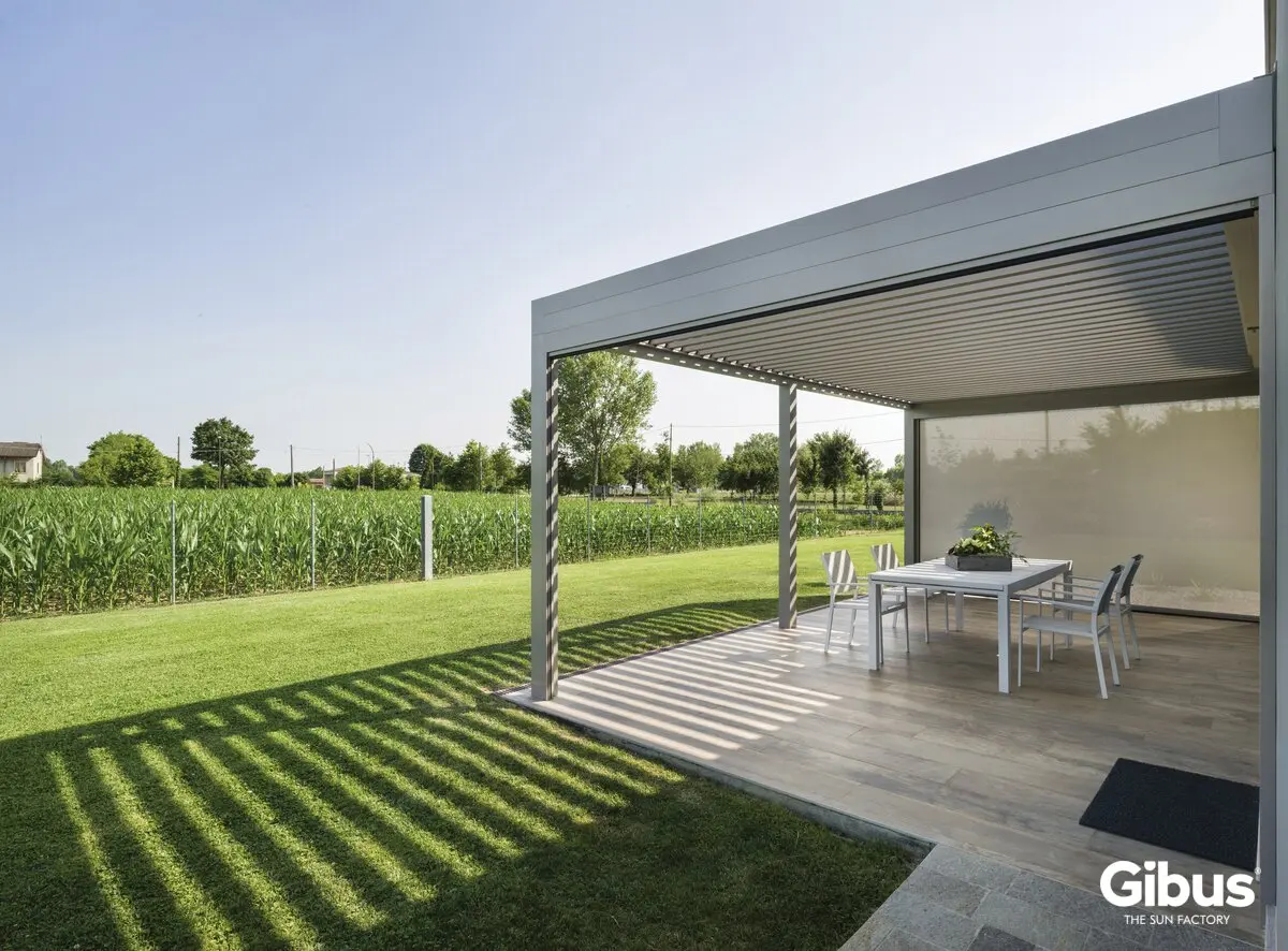 Le pergole bioclimatiche Gibus dialogano silenziosamente con la natura per offrirvi un benessere costante al mutare delle condizioni atmosferiche. Anche le più impercettibili. E con il minimo dispendio energetico. Il segreto è nella copertura a lame, personalizzabili a seconda delle esigenze. Sempre orientabili, per adeguarsi ad ogni evento atmosferico. Impacchettabili, per un maggior comfort. Dotate di pannelli fotovoltaici per rendere la luce del sole una fonte di produzione energetica.