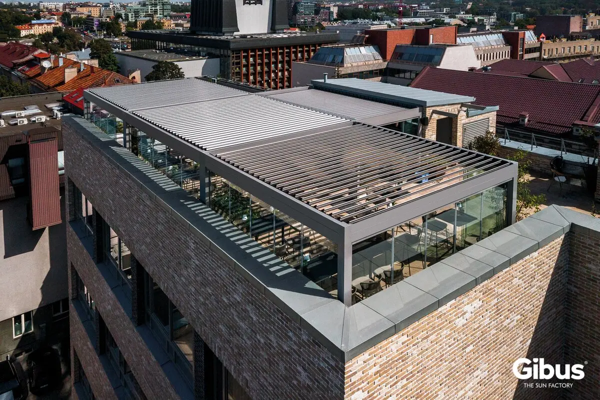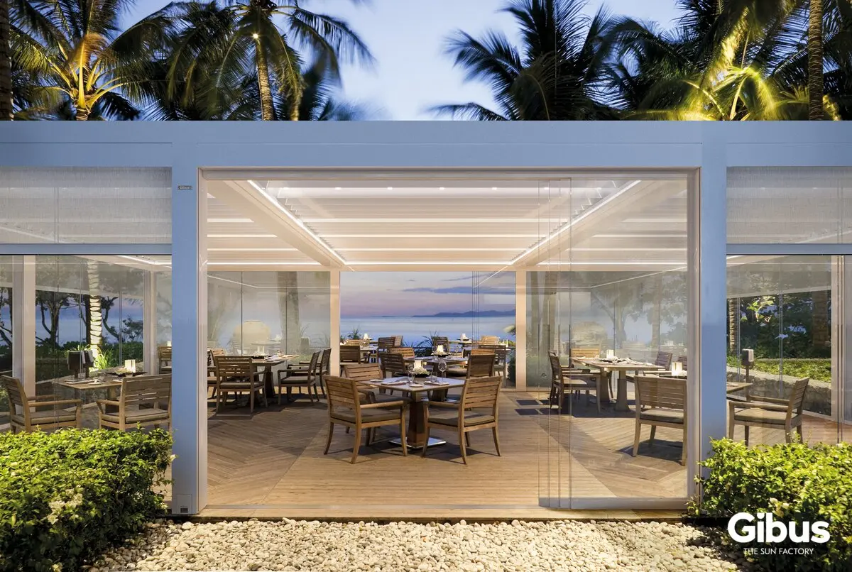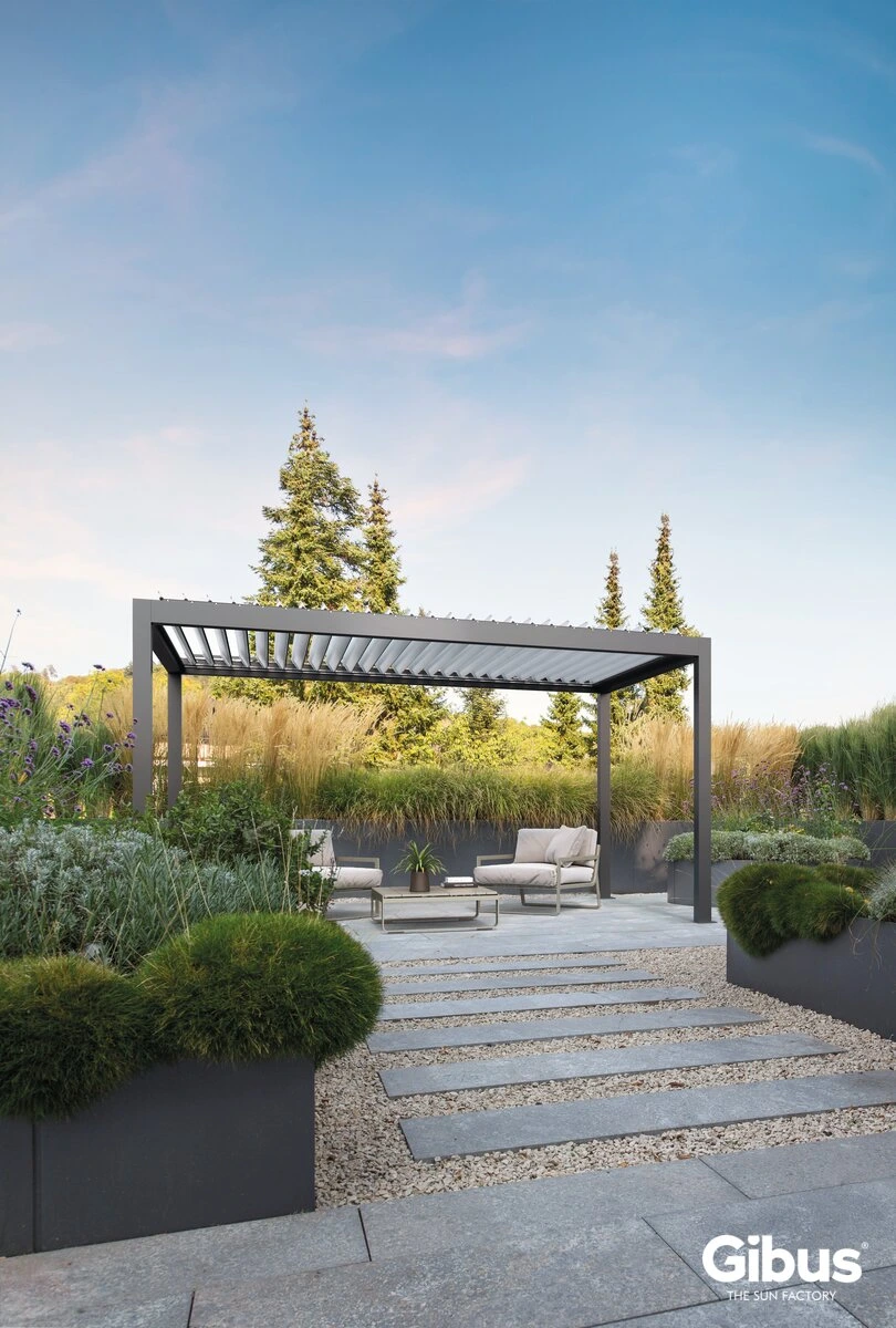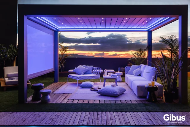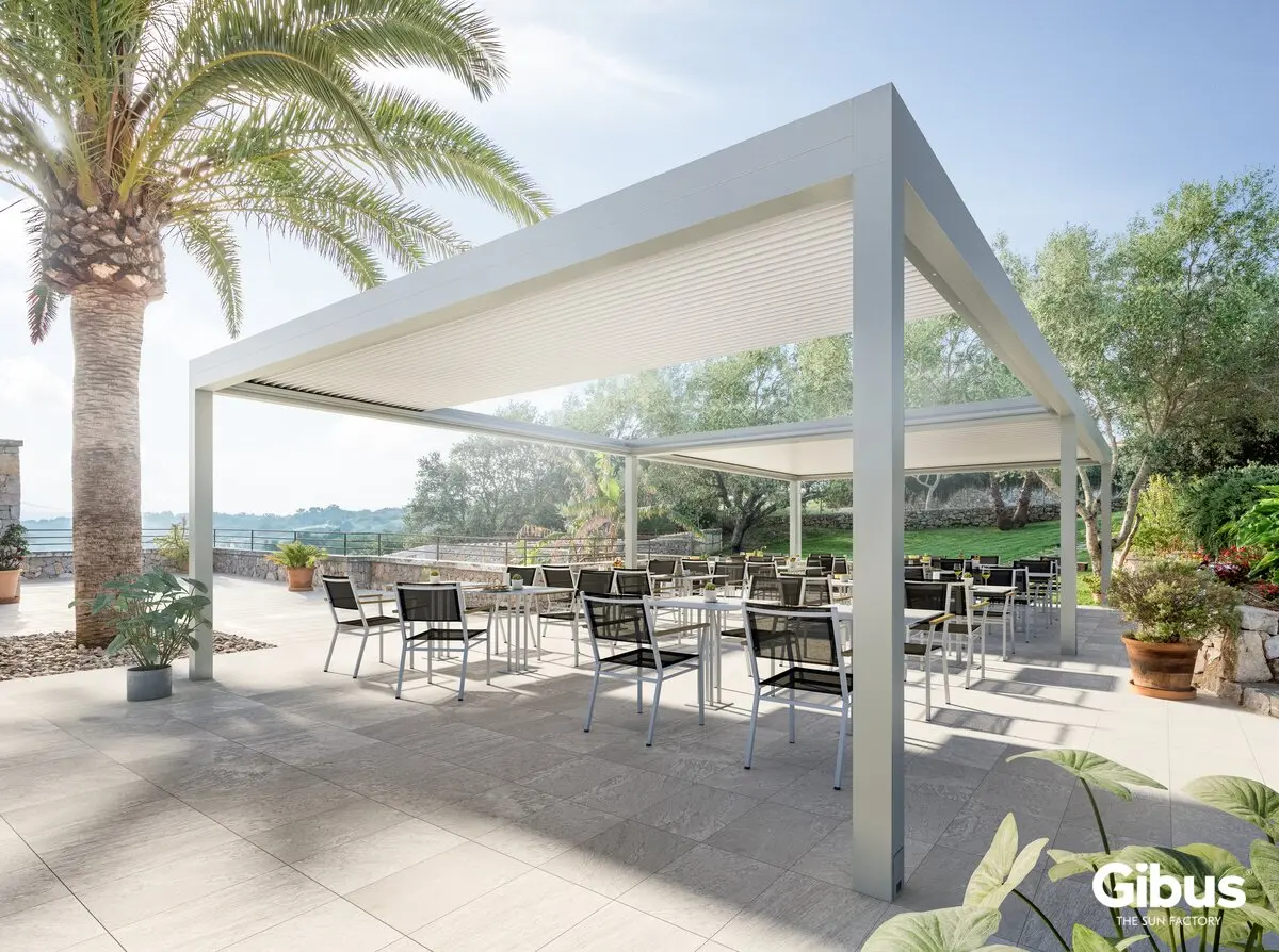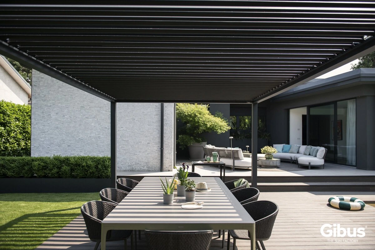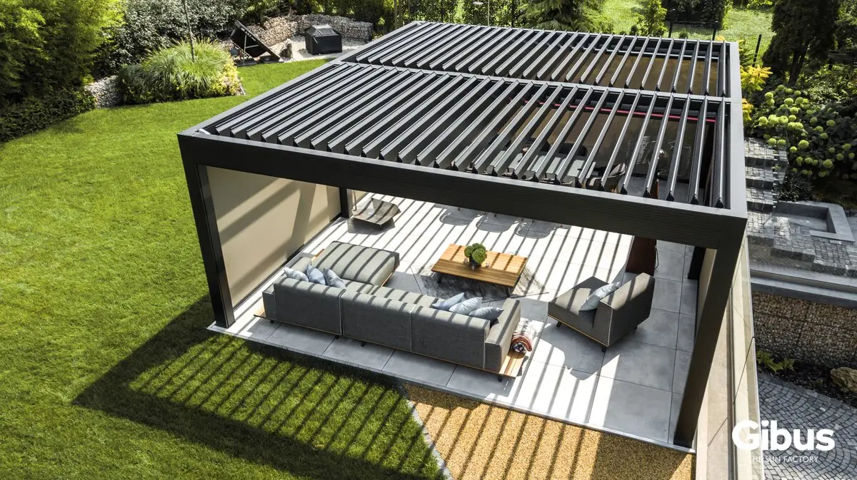 Le pergole bioclimatiche Gibus dialogano silenziosamente con la natura per offrirvi un benessere costante al mutare delle condizioni atmosferiche. Anche le più impercettibili. E con il minimo dispendio energetico. Il segreto è nella copertura a lame, personalizzabili a seconda delle esigenze. Sempre orientabili, per adeguarsi ad ogni evento atmosferico. Impacchettabili, per un maggior comfort. Dotate di pannelli fotovoltaici per rendere la luce del sole una fonte di produzione energetica.